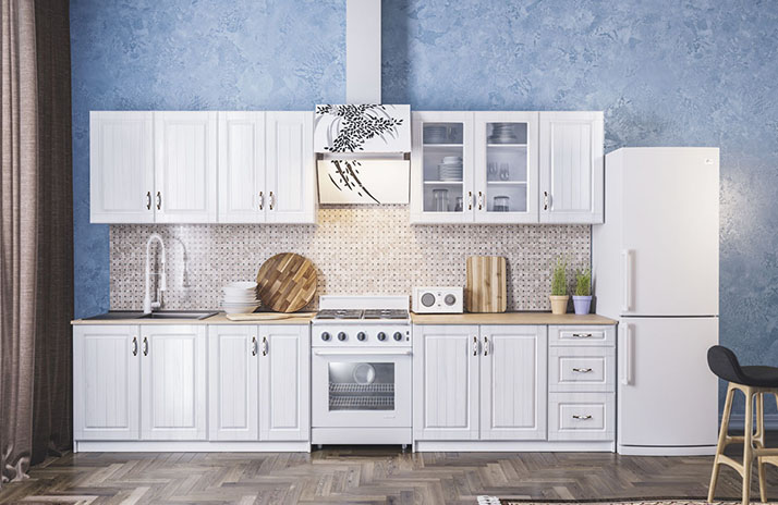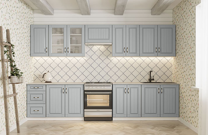 De keuken Provance is uitgerust met een handgreep DP 197AB/MLK, een bronskleurige metalen greep, met een optionele maat van 96 mm.